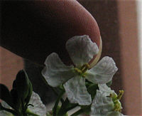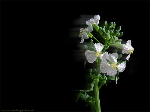 Heute gibts verschiedene Themen hier. -- ... zuerst ein freundliches Hallo an Alle, die über das Zeit zu leben-Kalenderblatt hierher gefunden haben, denn dort bin ich heute Tagestipp (danke, Tania :)) ). Hallo also, macht's Euch bequem und fühlt Euch wohl hier. Ein kleiner Hinweis an Alle Neuen noch: es gibt hier nun ab und zu vergammelte Vitamine, Aber was will man machen, wenn die so gut aussehen ;)). Auf vielfachen Wunsch gibts das gestrige Bild heute als Desktopmotiv: ![]() Einfach auf das kleine Bild klicken :). Aber ich bin nicht sicher, ob Ihr das Bild überhaupt haben wollt (doch dazu später mehr ;) ). -- Und nun gibts Neues vom Rettich. Ich muss den Werdegang des weißen Kerls ja verfolgen ;). Inzwischen wird er immer weniger weiß, dafür zunehmend weich. ![]() Aber Hauptsache, er blüht ... und wie er das tut :)). ![]() So ist der aktuelle Stand und auch obiges Bild gibts als Desktopmotiv, einfach draufklicken :). Und manchmal passiert es, das sich ein Fotomotiv genau dann, wenn die Kamera auslöst, selbständig macht ;). Und das gibt dann auch ein tolles Bild: ![]() Leicht verwischt .. fast künstlerisch. Und, ist doch klar, wer oben aufs Bild klickt, kann auch diese Variante auf den Desktop nehmen. So klein sind die Blüten übrigens: ![]() Zeigefingerspitze und Rettichblüte. Wer von Euch auch demnächst einen blühenden Rettich hat, der schickt ihn (nicht den Rettich, sondern das Bild davon *gg*) mir bis zum 30. Juni. Aus allen eigehenden Bildern wird ein Gewinner gezogen, denn Karin, meine heißgeliebte Teefee hat einen Preis dafür gestiftet :)). -- Bei Karin gibts diesen Monat übrigens wieder ein Monatsangebot: ![]() je 100g Wellness Tee Feel Relaxed, Best Balance und Good Vitality dazu 20 Frühlings-Servietten und 1 Frühlings-Blumensticker. Preis statt € 15,25 nur € 9,99 (ohne Porto) ! Zu bestellen im Shop. -- Und dann noch: Seelenfarben macht beim großen Homepage-Award mit. Es stehen in drei Vorrunden jeweils 28 Seiten zur Wahl. In der aktuellen 1. Runde ist meine Seite dabei. Wer will, darf voten (bzw. Schulnoten geben) und kann dabei eine Reise nach London (und andere Sachpreise) gewinnen Falls Ihr auch abstimmen wollt: Homepage-Award (man kann sogar öfter voten, habe ich mir sagen lassen) Danke Euch :)) -- Update auf Seelenfarben: es gibt 12 neue Impressionen -- Mein Grüße gehen heute nach Deudesfeld und an alle, die ... ... letzteres lasse ich in Zukunft weg, weil ich nicht nur einen Teil von Euch grüßen will, sondern täglich alle :)) -- Wunderkiste ![]() Lichtblick -- zurück zur Kalenderblatt-Hauptseite Kalenderblatt-Archiv |