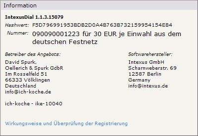 dass wenn man auf "Anbieterinformationen" klickt, diese Info erscheint:
