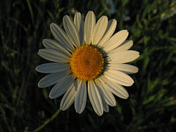Dann noch eine Margerite in Nahaufnahme und eine alte Mauer (die sich