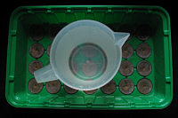 Nun stellt ihr den Meßbecher auf die Quelltöpfchen.