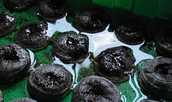 Noch sind das nur Torftöpfchen, das Quellen fängt jetzt erst an.