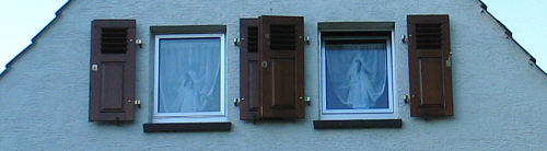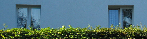 Ich liebe diese Reihenhaussiedlungen ... ![]() ... die vor so einigen Jahren an vielen Orten gebaut wurden. Damals waren die Häuser alle gleich. Doch mittlerweile sind Jahrzehnte ins Land gezogen und schon lange hatte ich die Idee, all diese Häuser nacheinander zu fotografieren, um zu sehen, ob und wie unterschiedlich Reihenhäuser aussehen, die ehemals gleich waren. Eine zweiteilige Bilderserie mit 27 Häusern, heute Teil 1. Ich hab wirklich eine Straße Haus für Haus abgeklappert, um 7.32 Uhr begonnen und um 7.44 vollendet. Klick und weg eben. Ein bisschen mulmig war mir schon, könnte ja die Oma hinterm Fenster stehen und die Polizei rufen, weil da jemand jedes Haus fotografiert. Da aber nix dergleichen passiert ist, geht's auch schon los mit den Bildern und meinen Kommentaren. Jeweils die Hausnummer, dann die oberen Fenster und zum Schluss die Fenster unten. ![]() Ja, diese Nummern zum Aufkleben waren mal sehr modern. In den 70ern oder so. ![]() Das dürfte sogar der Ursprungszustand dieser Häuser sein. Oben zwei kleine Fenster und Klappläden. Früher dürfte die Hauswand weiß und glatt verputzt gewesen sein, hier spendierte man dem Haus Fassadenplatten. Blumen und sonstige Ereignisse: Fehlanzeige. Frage: sind die Läden unten auch zu ? ![]() Antwort: nein Obligatorisch vor jedem Haus: die mehr oder weniger hohe Hecke, und dahinter mehr oder weniger grün. Normalzustand auch unten sind zwei Fenster und Klappläden. Ein recht normales Haus also und nun schaun wir mal, was es so für Variationen gibt. ![]() Im Ofen gebrannte Hausnummer an Telefonleitung ![]() Originalputz, aber ... hey ... ein Balkon. Mit dominantem Holzgeländer. Und Rollläden gibt's auch. Frage: gibt's unten auch Holz ? ![]() Antwort: nein Blaue Balkonstreben und auch hier Sonnenblumen. Und irgendwas will am Haus wachsen, hat aber nicht so geklappt. ![]() recht moderne Nummer auf grüner Basis ![]() Links Tür statt Fenster und einer der so genannten "Hasenbalkone". Viel zu klein zum Wohlfühlen und so gut wie immer leer. Frage: unten auch so ordentlich langweilig ? ![]() Antwort: ja Hecke, hoch, sonst nix Besonderes. ![]() Gehämmerte Nummer auf schönem Putz ![]() Und endlich die ersten Blumen, Geranien, die vor der dunklen Fassade so richtig leuchten :). Und hier hat man sich (wie in einigen anderen Häusern auch) gegen zwei kleine und für ein großes Fenster entschieden. Und das Grün wächst hier bis in den ersten Stock. Frage: leuchten auch unten die Geranien ? ![]() Antwort: weiß man nicht, Hecke davor Bäume, Sträucher und ganz spezielle Fensterumrandungen. Hollaräduljö ![]() Das einzige aller Häuser ohne Hausnummer. Die ist in diesem Falle an der Seite. ![]() Blaue Kunststoffverkleidung und weiße Fenster. Ein im Vergleich klares und modernes Erscheinungsbild. Frage: unten auch alles blauweiß ? ![]() Antwort: eher grauweiß Sachlich, aber wenig spektakulär der untere Stock. ![]() Designhausnummer ![]() Klappläden mit schöner Stellung und herausputzenden Beschlägen Frage: sind unten die gleichen Läden in gleicher Stellung ? ![]() Antwort: gleiche Läden ja, aber ganz geschlossen. ![]() Nix besonderes bei der Hausnummer ![]() auch nix besonderes im ersten Stock Frage: wird's unten bunter ? ![]() Antwort: nein Ob da noch jemand wohnt ? Oder sind die im Urlaub an der Playa ? ![]() Wieder so eine Hammerschlagnummer ![]() Oben nur ein Fenster und alles dicht Frage: geht's so langweilig weiter ? ![]() Antwort: mitnichten, ganz das Gegenteil Das sieht unten richtig gut aus. Man sieht, welch positive Wirkung ein paar blühende Pflanzen haben. ![]() Interessanter Putz hinter der Nummer und ein bisschen Grün ![]() Viel mehr als ein "bisschen" Grün ... man die Fenster kaum noch. Frage: sieht man die unteren Fenster überhaupt ? ![]() Antwort: teilweise Wenigstens ein Fenster ist frei und in der Mitte geht dann los mit der grünen Oase ![]() wenig spektakulär ![]() Die Nummer gehört nicht zum Haus, ich wollte den Mast mit Laterne und Schild nicht erst umfahren. Aber der Blick ist ja frei zu den Gardinen ;). Hier wieder nur ein Fenster und dunkle Verkleidung der Fassade. Frage: ist das Haus unten auch verkleidet ? ![]() Antwort: nein Unten gibt's mal wieder Blümchen und auch Klappläden. ![]() Nix Neues bei der Nummer ![]() Wieder mal ein Balkon und sogar zwei Pflanzen drauf. Frage: aufgeräumt-idyllisch auch unten ? ![]() Antwort: ja doch Und die niedrigste Hecke von allen Häusern. ![]() Das dürften die ganz alten Hausnummern sein, ![]() Man sieht rein gar nix ... aber irgendwie fehlt ein Laden oder es ist ein zusammengefalteter Frage: wie viel Wald ist unten ? ![]() Antwort: viel Zugewachsen, fast verwunschen, doch wenig Licht im Haus, würde ich mal sagen ... ![]() wieder eine alte Hausnummer und etwas Grünes gibt's hier auch: ![]() Hier mal ausdrucksvoll geraffte Gardinen, aber keine Blumen. Frage: unten auch solche Gardinen ? ![]() Antwort: eher nein. Dafür steht ein Auto vorm Haus und links die Jalousie wartet auf einen handwerklich begabten Menschen ;). ![]() Was Neues, eine gemalte Hausnummer. ![]() Ist das noch aus der Weihnachtszeit. Oder vertrockneter Sommer ? Wieder mal nur ein Fenster und grau umrandet. Frage: welche Jahreszeit hat das Erdgeschoß ? ![]() Antwort: Sommer Doch, recht aufgeräumt und es ist wirklich so, Blumen am Fenster sehen einfach besser aus. Das war nun der erste Teil, ein zweiter wird folgen. Und eine weitere Straße habe ich auch noch fotografiert :). -- Ich grüße heute Ried in Oberösterreich :)). -- Update auf Seelenfarben: neue Desktopmotive -- Vorschau: nächste Woche wird eine ganz besondere Kalenderblatt-Woche :)). Aber auch diese Woche wird ganz ordentlich ;). -- Klaus war gestern unterwegs --> ![]() Wunderkiste ![]() Lichtblick -- zurück zur Kalenderblatt-Hauptseite Kalenderblatt-Archiv |