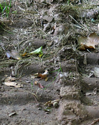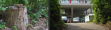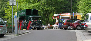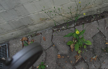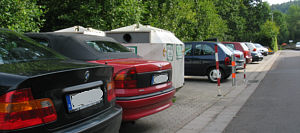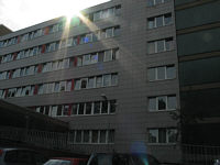 Desktopmotive - kommen im Laufe der Woche mindestens zweimal Olympiaringe - ab Dienstag jeden Tag Führerscheinbilder - verzögern sich etwas Theos - warte noch auf evtl. Rückmeldungen, kommen auch im Laufe der Woche Klaus - gibts natürlich regelmäßig Wie ich das alles unter den Hut bekommen will ? Weiß ich auch nicht *gg* ... ich hoffe einfach auf Eure Geduld. Oder auf Tipps, wie ich das alles gleichzeitig bringen kann, ohne Euch und/oder mich zu überfordern. Ja, ich weiß, ich mach das schon ;)). Tipps nehme ich aber trotzdem entgegen. Wäre halt schade, wenn ich alles jeden Tag bringe und wegen der Menge an Bildern manches nicht genügend Beachtung fände. Und ab und zu will ich auch etwas ganz Anderes bringen. Wie heute zum Beispiel. Heute sehen wir den bebilderten Versuch, auch nichts etwas zu machen. Stellt Euch vor, Ihr steht vor der Homburger Uniklinik. Ihr habt dort einen ambulanten Routinetermin und müsst noch eine halbe Stunde warten. Habt aber keine Lust, still auf Holzstühlen zu sitzen und uninteressante Heftchen zu lesen. Ihr wollt' am liebsten wieder nach Hause, was aber nicht geht. Na, wenigstens habt Ihr die Digitalkamera dabei. Wie ich ;). Aber was soll ich mit der Digi in der Hand auf diesem öden Parkplatz anfangen ? Die Autos fotografieren ? ![]() In der anderen Richtung ist ein kleiner Kiosk. Hunger habt Ihr dank Käselaugenstange kurz zuvor nicht mehr und außerdem sind die Tische vor dem Kiosk schon besetzt. ![]() Vor Euch die Klinik. Da komme ich her und will die nächste halbe Stunde nicht wieder hin. ![]() Ich laufe ein paar Schritte ... Glascontainer ... auch nicht gerade ein Highlight. Ich könnte ja mal reinfotografieren (wäre nicht das erste Mal *g*), aber es sind viel zu viele Leute, die kommen und gehen an diesem Morgen. ![]() Weit kann ich ja auch nicht laufen, wie schnell ist eine halbe Stunde vorbei. Die einzige Hoffnung ist der kleine Weg hinter den Containern, der in Richtung Wald führt. ![]() Doch ein paar Schritte weiter war das eher ernüchternd. Keine Sonne dort, sondern dunkler Eck. Hinten ein uninteressantes Bauwerk, dass etwas mit Strom zu tun hat. Der Weg geht nicht weiter, die Öffnung ist nur für die technische Einrichtung da. Das sind so Situationen, wo einerseits der Ehrgeiz erwacht ("ich hab noch immer etwas Fotografierenswertes gefunden") ich aber andererseits wirklich zum ersten Mal gezweifelt habe, ob das wirklich etwas wird mit den Bildern. Denn vor Augen hatte ich bereits dieses Kalenderblatt ;)). Die Zweifel hielten sich einige Schritte, bis ich zu diesem Baumstumpf kam. Oben auf dem Bild am rechten Wegrand zu sehen und hier in größer: ![]() Ein Baumstumpf eben ... von einem ehemals mächtig großen Baum. Darauf liegen ein paar Steine. Kann man da fotografisch etwas rausholen ? Gehn wir mal näher ran: ![]() Strukturen wie aus einem versteinerten Land. Fast könnte man meinen ... ![]() ... dies wären große Felsen und man irgendwo in Südosteuropa in Urlaub. Und grün ist die Hoffnung, dass man doch Motive findet: ![]() Na gut, besser als nix ... gehn wir mal weiter: ![]() Ja, dieses Stromhäuschen da ... und geradeaus gehts nicht weiter, also gehn wir mal nach rechts ... ![]() ... immer an der Wand entlang ... ![]() ... bis wir vor einem rotweißen Band stehen. Falls das eine Absperrung sein sollte, ignorieren wir die mal und freuen uns an den einzelnen Sonnenflecken auf dem Boden und an der Wand: ![]() Na ja ... ziemlich langweilig. Vielleicht als alternativer Desktophintergrund. Mal schauen, was das Absperrband hergibt. ![]() Hmmh ... vorne scharf gestellt macht's wenig Sinn ... vielleicht die Wand scharf stellen und den Blick dadurch in die Ecke des Bildes lenken, was eine gewisse Dynamik gibt. ![]() Ja, schon besser. Und wenn ich diese ganzen Zickzacklinien der Schnur verfolge. ![]() Nicht ohne, aber ein bisschen unruhig ... weniger ist mehr. Zum Beispiel diese Diagonalen hier: ![]() Ja, gefällt mir ausgesprochen gut. Hier hab ich immerhin selbst durch die Wahl meines Standortes ein Motiv erst gefunden. Manche Motive sind schön, nur weil es Natur ist. ![]() Sonne auf der Rinde eines Baumes, die Belichtung auf die hellen Stellen gerichtet. Und dann dieses Ding da an der Wand mit seinem Schatten: ![]() Das ist jetzt ziemlich deutsch: korrekt, aber etwas langweilig. Man könnte da viel mehr Dynamik reinbringen, wenn man die Diagonale als Bildelement wählt. ![]() Das einzige, was jetzt noch stört, ist der rechte obere Eck des Bildes. Natürlich habe ich auch geschaut, was unter dem Deckel ist ;)). ![]() Eine nicht allzu saubere Stromzapfstelle. Aber keine Steckdose im normalen Sinne. Gehn wir mal weiter ... etwas Efeu an einem Baum ![]() Das Bild ist in groß leider unscharf, aber geschnitten und stark verkleinert geht es. Von den Autospuren ... ![]() ... hätte ich mir mehr erhofft, aber die Kamera flach über den Boden halten und fotografieren ... ![]() ... ergab nur ein langweiliges Bild. Ich hatte auch nicht den Nerv und das Kreuz, um mich lange mit diesem tiefliegenden Motiv aufzuhalten. Lieber weiter um das Häuschen rum. Viel Wald gibts hier ![]() Und wenig Licht. Deswegen musste ich ISO 200 nehmen, und trotzdem sind mir einige Brennesselbilder einfach nur unscharf geworden. ![]() Das hier geht noch, nur der Schatten auf dem Blatt müsste ich retuschieren. ![]() Und das hier ... ![]() ist uninteressante entartete Kunst ;)). So, nun stehen wir wieder vor dem Haus. ![]() Dann fotografieren wir uns halt mal selbst. Und dann suchen wir uns eine Position, in der man den Fotografen nicht sieht und drücken noch mal auf den Auslöser ![]() Die Linien sind etwas verzerrt, das könnte man gerade stellen, aber diese Pfriemelei hasse ich, als bleibt es so, wie es ist. Vor der Wand finde ich dieses Pflänzchen ![]() Mal nah rangehen ![]() na ja, modern, einfach gestaltet, etwas langweilig. Und wegen ISO 200 (ich hab mal wieder nicht umgeschaltet) nur stark verkleinert zu gebrauchen. Neuer Versuch ... ![]() ... schon b