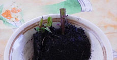 Blätter getrieben hat und die dritte Pflanze, die noch auf der Fensterbank