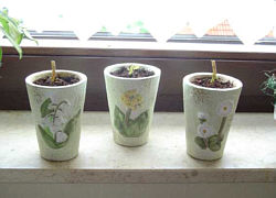 Hallo, heute nur mit Wort ohne Ton ;) ... aber Töne wirds immer mal wieder geben. Heute gibts hauptsächlich Nesselchen ... ich versuche mich mal wieder im Mailsortieren und ich hoffe, dass ich alles Nesselchenbilder und -texte in meinen Ordnern gefunden habe. Aber zuerst habe ich noch ein paar andere Dinge: Am Sonntag ist der Tag des offenen Denkmals und zwar in ganz Deutschland. Es gibt einige interessante Sachen zu sehen, die man sonst nicht besichtigen kann. Das nur mal als Freizeittipp, auch wenn leider das Wetter schlechter zu werden droht. -- Zwei Hilferufe von Seelenfarbenbesucherinnen, die eine Homepage suchen: Dagi sucht einen Link, der nach ihren Angaben in den Kommentaren eines vergangenen Kalenderblattes zu finden war. Es ging über ein Buch mit dem Tenor "weniger Kohlehydrate zu sich nehmen". Mehr detektivische Fähigkeiten sind bei der Frage von Ela notwendig ;). Sie such die "Seite mit der Gartenbank, wo man ausruhen kann und auch schreiben." Vielleicht könnt Ihr helfen ? -- Nachträglich herzliche Glückwünsche an alle Geburtstagskinder in dieser Woche, da hatten sich ja einige via Kommentarfunktion gemeldet :)). -- Und nun die Nesselchen: Ute Otto ... ![]() ... hat es leider nicht geschafft. Aber Ute hat einen Trost-Otto bekommen von ihrer Kollegin, als Ersatz für den Verlust. Also beobachten wir den einfach weiter ;). ![]() Außerdem ist, glaube ich, noch ein Kopfsteckling vom echten Otto da :). -- Bärbel hat mir berichtet, dass ihr Nessy noch lebt. Er steht an einem Südfenster und die Blätter sind schon etwas größer geworden. Sogar Farbe ist schon zu sehen ... die Tendenz geht Richtung Schönheit. Fast Ottomäßig ;). Und das Wichtigste: Bärbel hat noch im September Geburtstag und wünscht sich eine Digicam. Falls der Wunsch in Erfüllung geht, gibts dann auch Bilder :)). -- Ilona hatte ja Li La Lu bekommen. ![]() Leider heißt es nur noch Li und Lu. Aber die beiden anderen legen so richtig los. ![]() Li wird rote Blättchen bekommen und Lu ist eher grün hinter den Ohren. Dafür wird sie schön buschig-breit. Was sich dann aber beim nächsten Bild wieder relativiert ;). ![]() Die Nesselchen haben inzwischen ein neues Zuhause bekommen, wie es aussieht, beide in einem Topf und liebevoll mit Moos abgedeckt (wegen Urlaub wahrscheinlich): ![]() Ob das jetzt wirklich so ist (ich bin mir ziemlich sicher) kann ich leider (oder gottseidank) nicht fragen, weil Ilona jetzt erstmal gemütlich in Urlaub gefahren ist. Hab einen schönen Urlaub und komm gesund wieder. -- Die Jutta schreibt "sicher bin ich die einzige, deren Nesselchen es nicht geschafft hat zu überleben, ich hab ein richtig schlechtes Gewissen ..." und ich antworte: a) du bist nicht die Einzige b) gar kein Grund für ein schlechtes Gewissen zu haben c) hab ich ja noch Deine Adresse :)) d) also Kopf hoch und vorfreuen -- Den Termin für's Versenden muss ich aber leider wieder verschieben, ich will das Einpacken doch mit Beate zusammen machen, die arbeitet im Moment aber länger. Dann ist es aber zu spät für die Post und die Nesselchen wären einen Tag länger unterwegs. Aber übernächste Woche hat Beate Urlaub und da gehen garantierte die Nesselchen auf die Reise. -- Elisabeth und Willi hatten diese Beiden bekommen: ![]() Links im Bild ist die Ayla, weil Ayla sich als starke Frau durchs Leben schlägt. Das Elisabeth-Nesselchen also. Rechts das Nesselchen ist eine Sie, gehört dem Willi und heißt Gwendolin, weil Willi eben sagt, dass das Pflänzchen einfach gwendolinmäßig aussieht ;). Die erste Zwischenmeldung lautete, dass Gwendolin wächst und gedeiht, derweil Ayla noch ein Kümmerchen sei, aber durchkommen wird. Aktueller Stand: ![]() Gwendolin ist also schon richtig am Wachsen und Erröten. Ayla, immer noch recht kümmerlich und recht grün. Aber man weiß ja nie, was diese starke Frau so für Pläne hat ;). -- Von Melanie kann ich leider nix Neues berichten -- Und nun die Gabi und ihre Cinzia, die damals so aussah: ![]() Ist ja nicht nur Cinzia, sondern drei ... Cinzia, Fred und eins ist noch namenlos. Gabi erzählt: Cinzia: ![]() Sie ist auf dem ersten Foto von vor 2 Wochen die mit dem dickeren Stängel und den beiden grünen Blättchen (oben rechts im Topf). Nach wie vor ist sie sehr stolz und trägt neuerdings in ihrem Grün eine vornehme weiße Blässe zur Schau. Für eine Italienerin ist sie vom Teint her etwas aus der Art geschlagen … aber sie ist eine richtige Diva!! Der kleine Fred: ![]() War auf dem ersten Foto das Pflänzchen links mit dem dünnen Stängel und einem kaum sichtbaren Blättchen. Fred heißt Fred, weil Savina (meine Freundin) ihm spontan den Namen gab. Ich konnte mir ihn zunächst überhaupt nicht merken. Immer wieder musste ich überlegen oder nachfragen. Aber seit ich ihm als Eselsbrücke den Nachnamen „Feuerstein“ verpasst habe, klappt das wunderbar. Auch Fred hat sich gut gemacht. Er ist zwar immer noch viel zarter als Cinzia, dafür hat er aber schöne rote Bäckchen bekommen und scheint dreifarbig grün/weiß/rot/ zu werden. Eigentlich müsste er der „Italiener“ der Dreien sein, da er ja die Farben der Landesflagge vertritt. Aber er ist ja schon ein „Neandertaler“, und ein Attribut reicht !! Namenlos: ![]() Namenlos harrt noch der Namensgebung. Er war ein abgeschnittener Kopfsteckling ganz ohne Wurzeln. Er hatte viele Blätter und war von Anfang an der Größte der Dreien. Aber er hatte ein paar Tage nach der Ankunft schwer zu kämpfen. Er konnte aufgrund der fehlenden Wurzeln nicht alle Blätter versorgen und die meisten hingen schlapp und welk um ihn herum. Da habe ich zur Schere gegriffen, die untersten Blätter ganz abgeschnitten und die obersten ziemlich stark eingekürzt. Das hat die Verdunstungsoberfläche der Blätter verringert. Danach hat er sich sofort besonnen und bald losgelegt. Er ist immer noch der Größte der Dreien und trägt ein rotes Streifenmuster. Alle Drei machen sich bisher gut und genießen die September-Sonnentage noch an der 