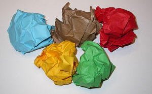 Einmal Papier, geknüllt, in den Eimer geworfen, wieder heraus geholt und