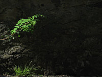 Grün, ins rechte Licht vor einer Hauswand gesetzt