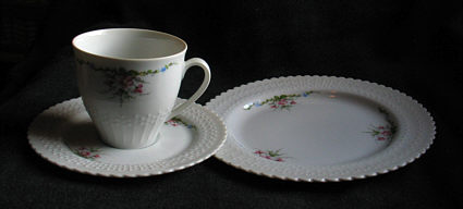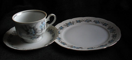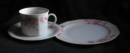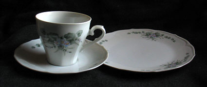 und meine Mutter die Sammeltassen auf den Tisch stellte.