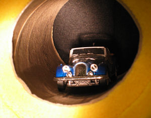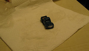 Hier steht das Auto auf einem Blatt Küchenrolle.