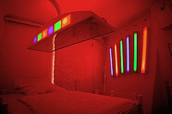 verschiedenfarbiges Kunstlicht beliebig eingefärbt werden.