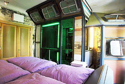 Geschlafen und gesessen wird in bequemen Kisten, die in den Fußboden