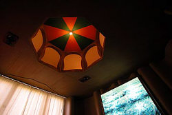 Durchleuchtete Lanschafts- und Wolkenbilder an den Wänden