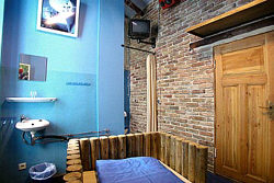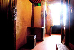 ganz kleines Zimmer, rustikal südländisch und Blumenfotografien an der