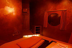 Sandsteinbad in kräftigem Blau und, weils so schön ist, "nicht" hinter
