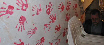 Wieder mal an diesen Händen auf den Wänden unter den Leitungen vorbei.