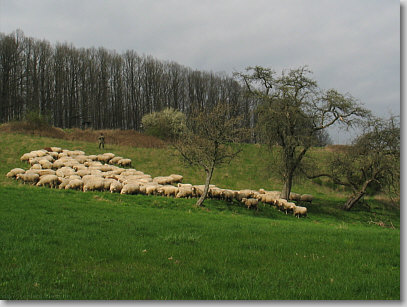 die gute alte Zeit ... in Form von Schafen, einem Schäfer und alten Bäumen