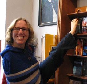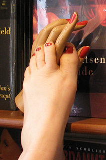 Die Chefin der Buchhandlung rezitiert gerade einen Krimi,
