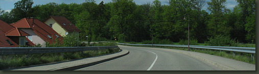 Der Ort ist zu Ende, der Wald steht dunkel an der rechten Seite
