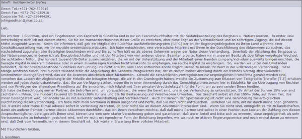 Häufige Vertreter dieser Gattung sind Mails aus irgendwelchen fernen