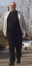 Erlangen: schwarze Hose, graues T-Shirt, schwarze Weste.