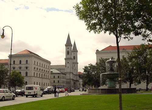 Links das Georgianum, die Ludwigskirche und die Bayerische