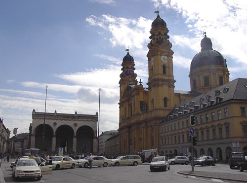 Feldherrnhalle überragen und erst hinter dem Fotografen eine Straße den