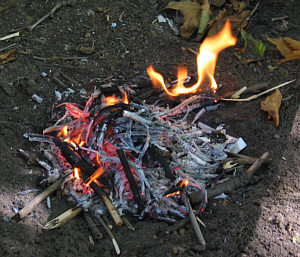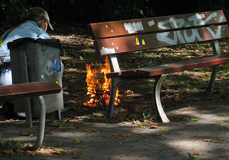 wie da jemand ein Feuer zu machen scheint ... seltsam, seltsam.