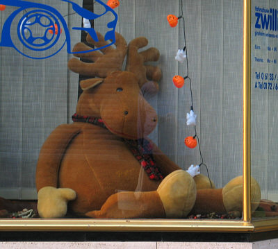Diesen Plüschelch fand ich in Nierstein, im Schaufenster einer Fahrschule.