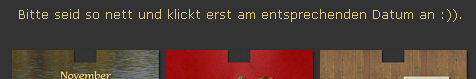 Ich geh jetzt einfach mal davon aus, dass die meisten Kalenderblatt-Leser auch in den Lichtblick rein schauen ... stimmts ?? Dort gibt es eine Rubrik, die sich "Abreisskalenderblatt" nennt ... und die sieht im Moment so aus: ![]() Gleich 6 Blätter auf einmal, weil ich im Moment nicht täglich aktualisieren kann. Ich bin nämlich gerade dran, meinen PC ganz neu einzurichten und alles neu zu installieren. Damit aber ja kein Abreisskalenderblatt verloren geht, hatte ich vorgearbeitet und so gabs gleich deren sechs. Welch ein Service ... ... über dem aber ... ein gewisser Satz steht: ![]() Welch verwerfliche Bitte aber auch *gg*. Aber noch viel verwerflicher ist, dass ich gerade mal nachgeschaut habe, ob diese Bitte auch befolgt wurde ... wenn das passiert wäre, dann hätten am Freitag, den 18. November, alle Besucher dieser Rubrik nur auf das Vorschaubild für diesen 18. geklickt. Aber (noch) nicht auf die anderen Blätter. Und so sah es aus: Am 18. November wurden folgende Blätter so oft angeklickt das Blatt vom 18.: 476mal das Blatt vom 19.: 215mal das Blatt vom 20.: 177mal das Blatt vom 21.: 148mal das Blatt vom 22.: 152mal das Blatt vom 23.: 157mal Womit wir auch schon beim heutigen Kalenderblatt-Thema wären: Neugier Wie neugierig seid Ihr ?? So neugierig wie ich ?? Ich bin sehr neugierig !! Ob ich schon vorgeklickt hätte ? Und mir damit die Spannung für die kommenden Tage genommen ? Mmmhh ... ich weiß nicht ... ich würde mal nein sagen, aber sicher bin ich mir auch nicht ;)): Was du heute kannst besorgen das verklicke nicht auf morgen *gg* Euch Allen einen guten Wochenstart :)) |