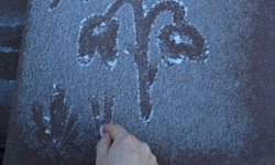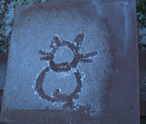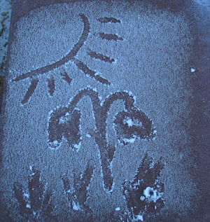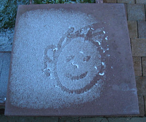 ... als Beate auf dem benachbarten Pfosten zu malen anfängt: