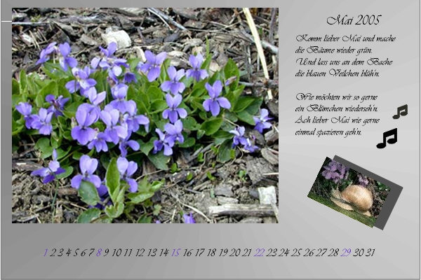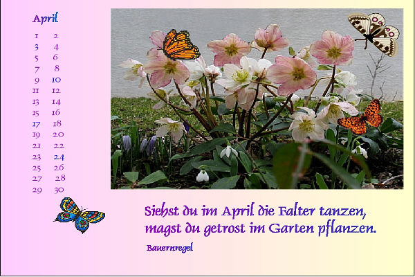 unserem Gärtchen Ende April fotografiert. Mit diesem Kalenderblatt