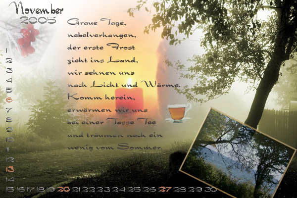 Kalenderblattes. Das Nebelfoto ist ein Free-Foto. Licht spendet der Teil