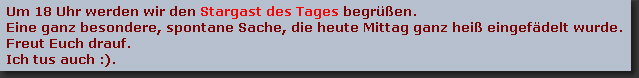 Stargast des Tages ist, evtl. immer noch (falls es sich nicht schon