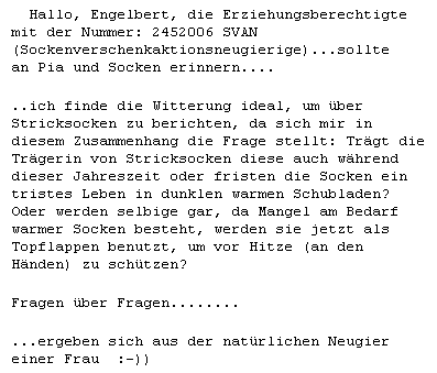 Iss das nich ein geiles Bild ... Socken, nette Worte, Zeitzeugnis einer