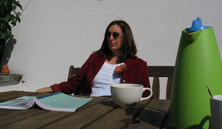 kleines Tässchen Kaffee. Was hat die Dame eigentlich an den Füßen ?