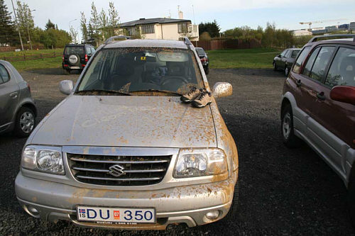 "Mud – clean me!" Gefunden in Reykjavik. Übrigens ist das ein Mietwagen