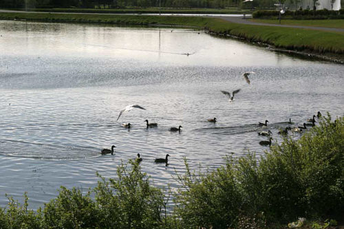 Im Stadtsee, Tjörnin, um das halbe Rathaus von Reykjavik herum tümmeln