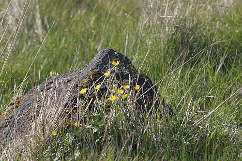 Auf einem Stück Wiese an einem Strand von Reykjavik fotografiert.