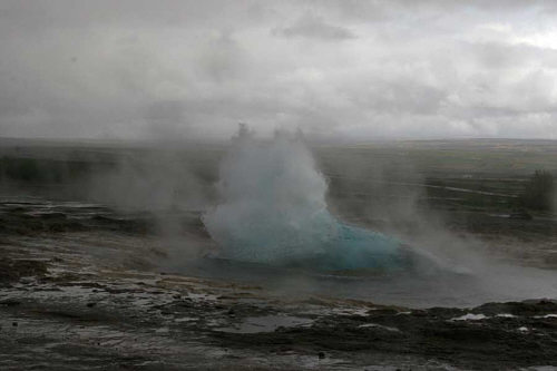 Geysir. Alle paar Minuten schießt eine Wasserfontäne aus der