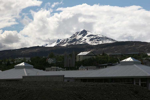 In Akureyri hatte es 16°C. Ein Blick zu den Bergen, wo noch Schnee