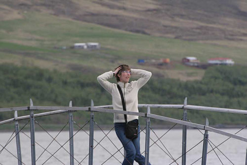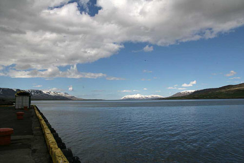 Im Hintergrund das Fjord, davor die Meereszunge, die an Akureyri