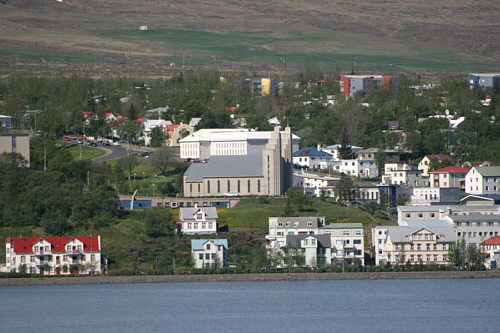 Akureyri liegt in einem Fjord, ist also vom Meer und den Bergen umgeben.