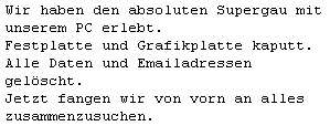 Mails nochundnöcher, zugesandte Bilder en masse und und und.