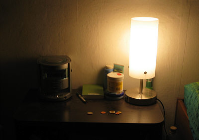 Hinter der Lampe ... ich fasse es nicht ... ein Behältnis, mit dem man