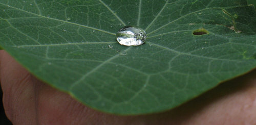 Die Tropfen laufen NICHT mehr das Blatt hinunter.