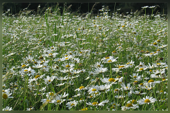 Margeriten auf der Wiese, die zwischen Fabrik und Bahnhof liegt,