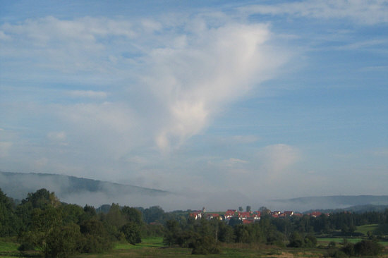 Die letzten Nebel lichten sich über dem Ort Nanzdietschweiler.
