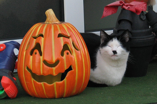 zwischen freudig erregter Katze und eine Kürbis *gg*. |