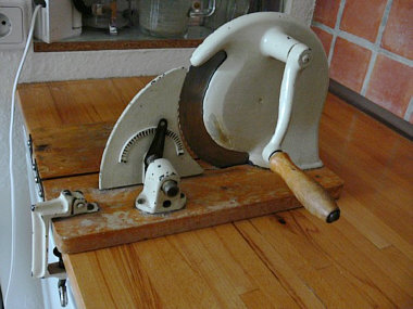 Obige Brotschneidemaschine hat schon Annettes Omi benutzt.