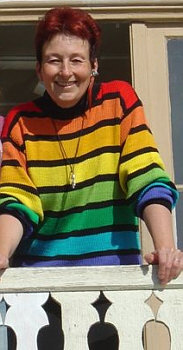 Sie hatte extra ihren 25 Jahren alten Regenbogenfarbenpullover gesucht